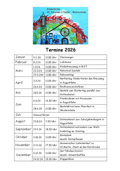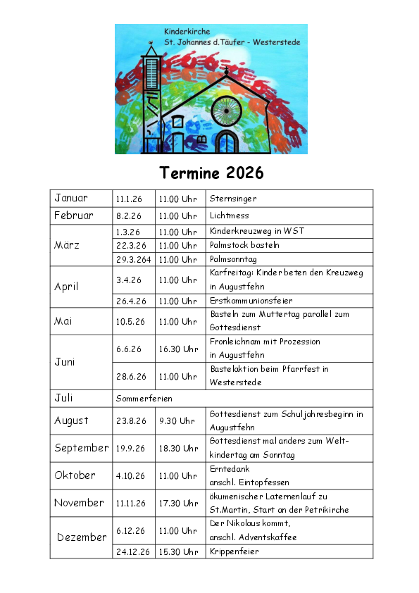 Herzlich willkommen im Gottesdienst und bei der Kinderkirche in St. Johannes der Täufer!